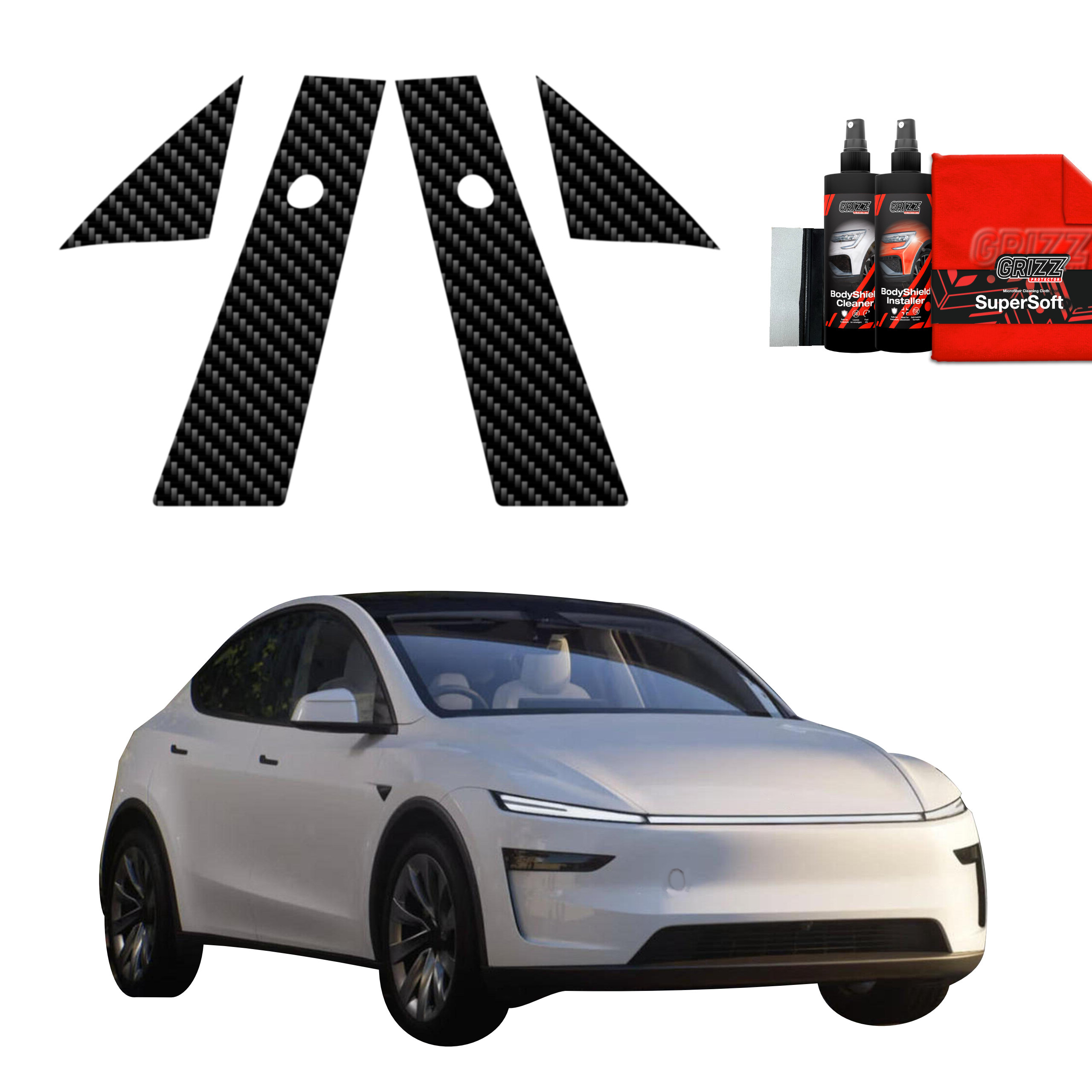 4in1 koolstof beschermfolie voor A-B pilaar - Tesla Model Y Juniper (2024-2025)