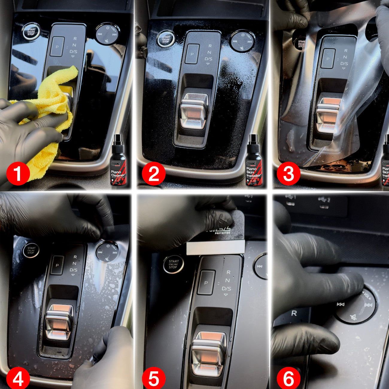 ✅Reinige die zu beklebende Oberfläche mit dem PianoSkin Installer.